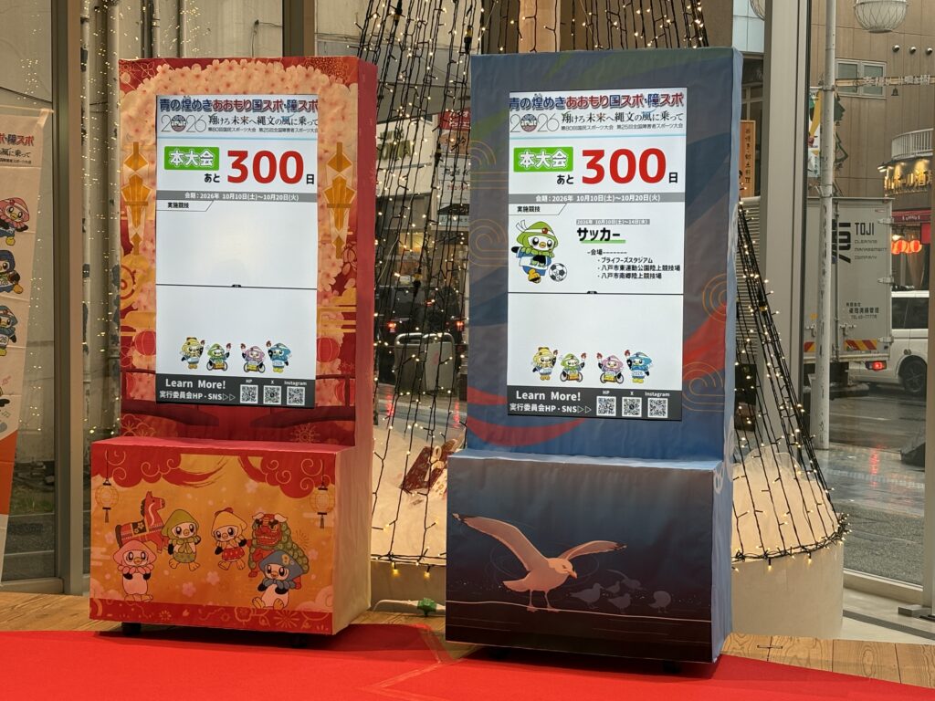 国スポ本大会の開催300日前にあたる令和7年12月14日(日)、八戸ポータルミュージアムはっちにて国スポカウントダウンボードの除幕式を行いました