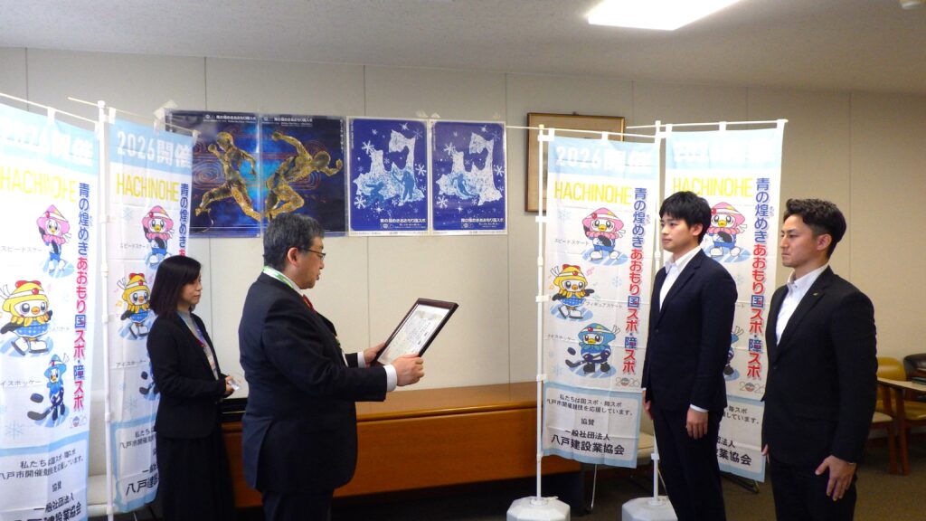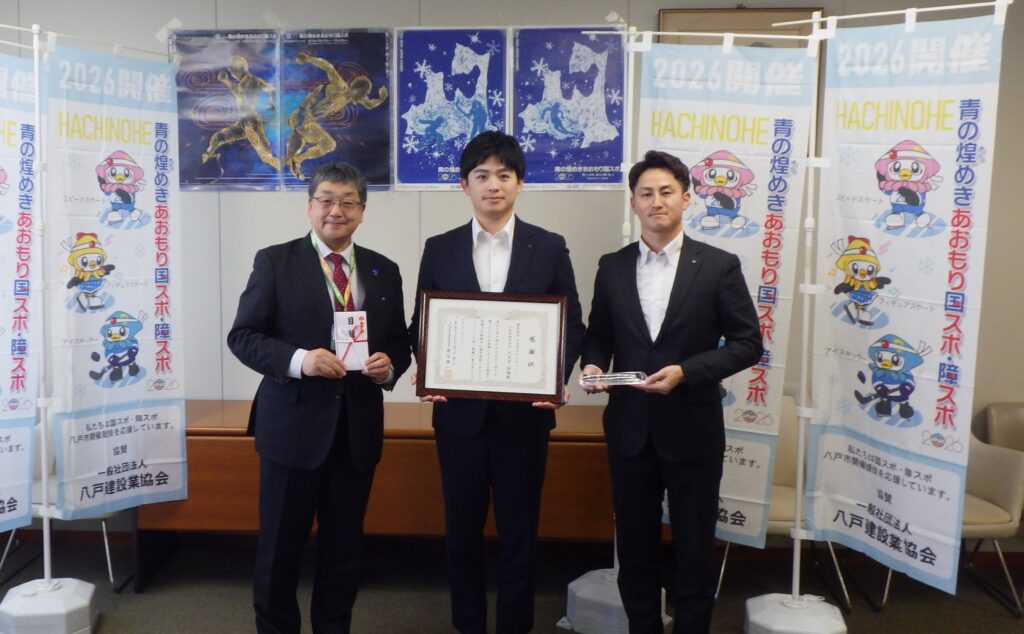 「青の煌めきあおもり国スポ」の開催にあたり、株式会社十文字チキンカンパニー様より国産鶏モモ肉150㎏の御協賛をいただき、11月27日に感謝状贈呈式を行いました!